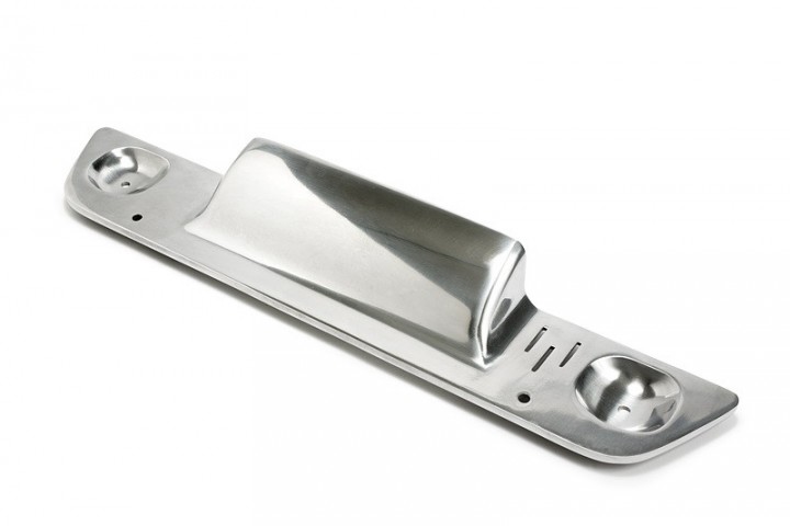 Pièce de fonderie polie, fixation sur le meuble par les dessus, avec chevilles.
