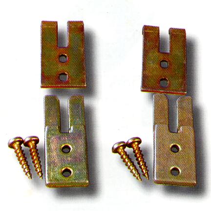 Ensemble de 4 pièces métalliques constituant la partie basse du système de fermeture du meuble B60