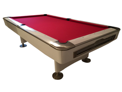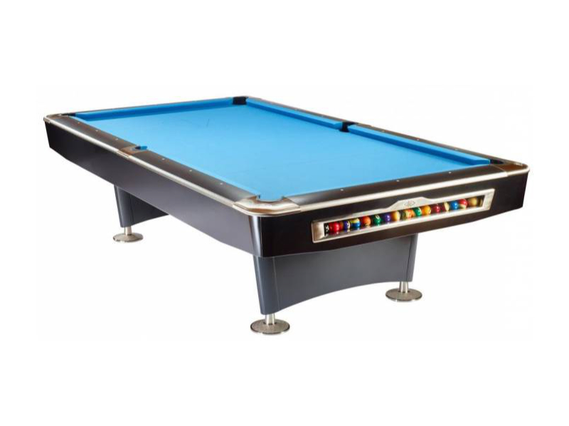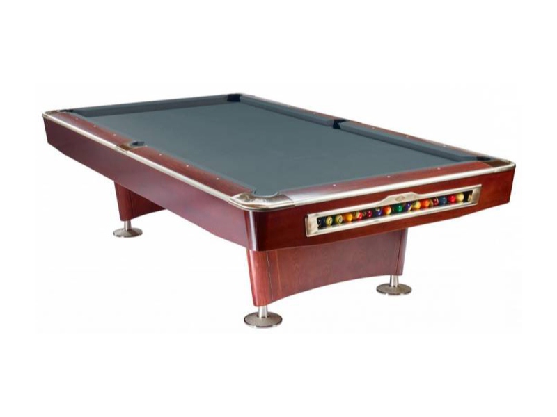 Billard pool américain très résistant. Bandes de caoutchouc à haut rendement. Véritable ardoise en trois partie. Vérins de réglage assurant une stabilité parfaite. Élégant design sport.