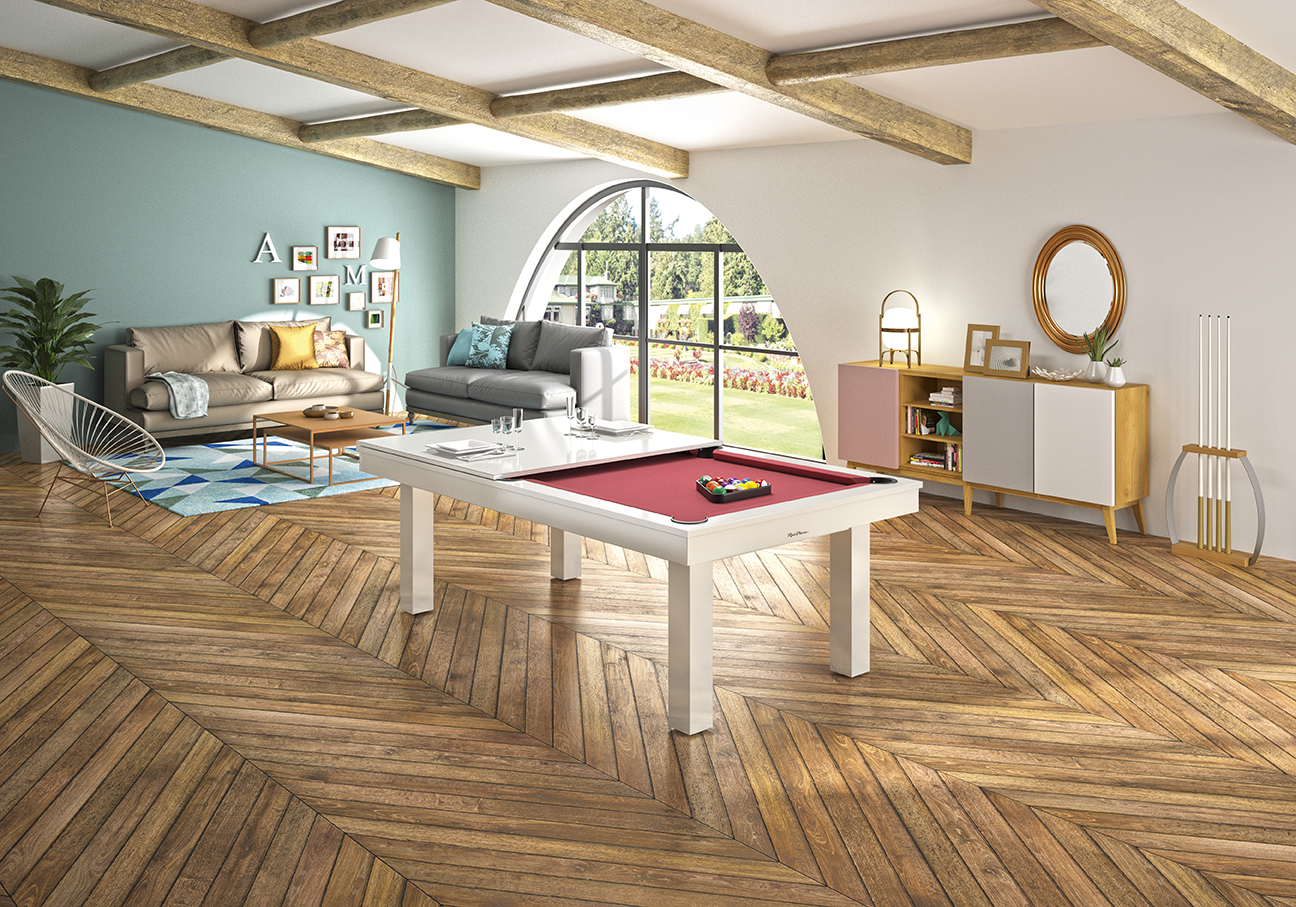 La sobriété des lignes de ce nouveau billard vous permettra de l'intégrer idéalement dans votre intérieur. Jeu américain avec option plateau table, il deviendra le centre vivant et convivial de votre habitation.