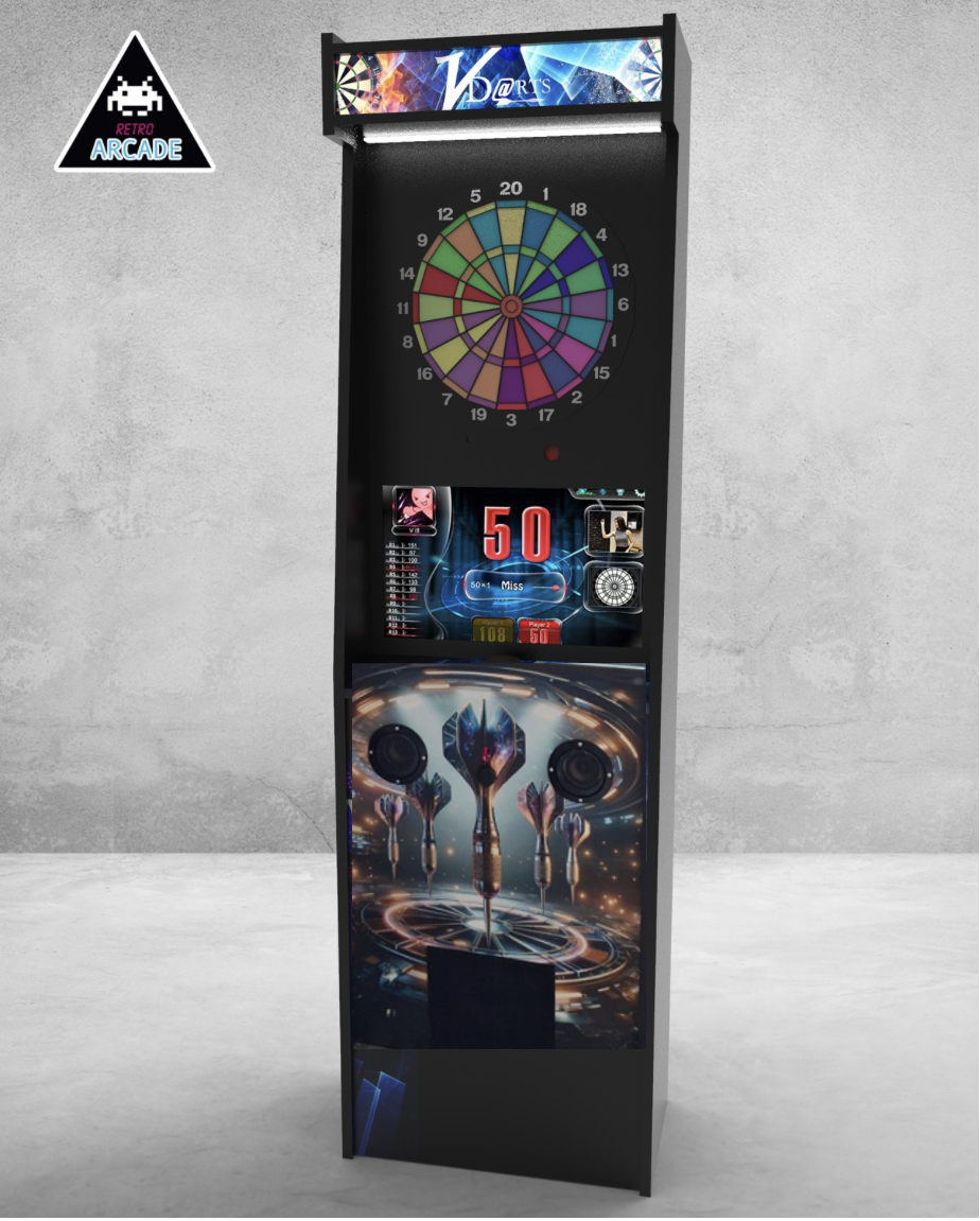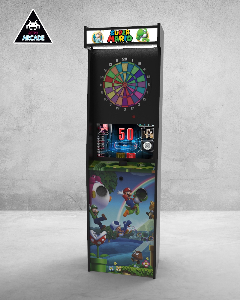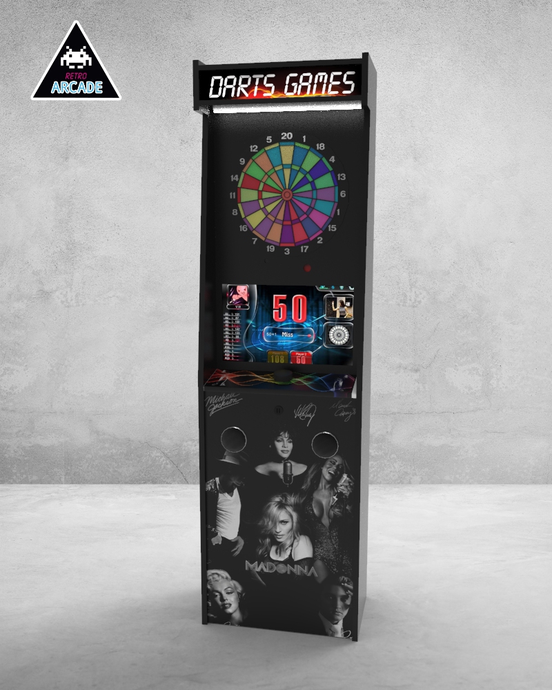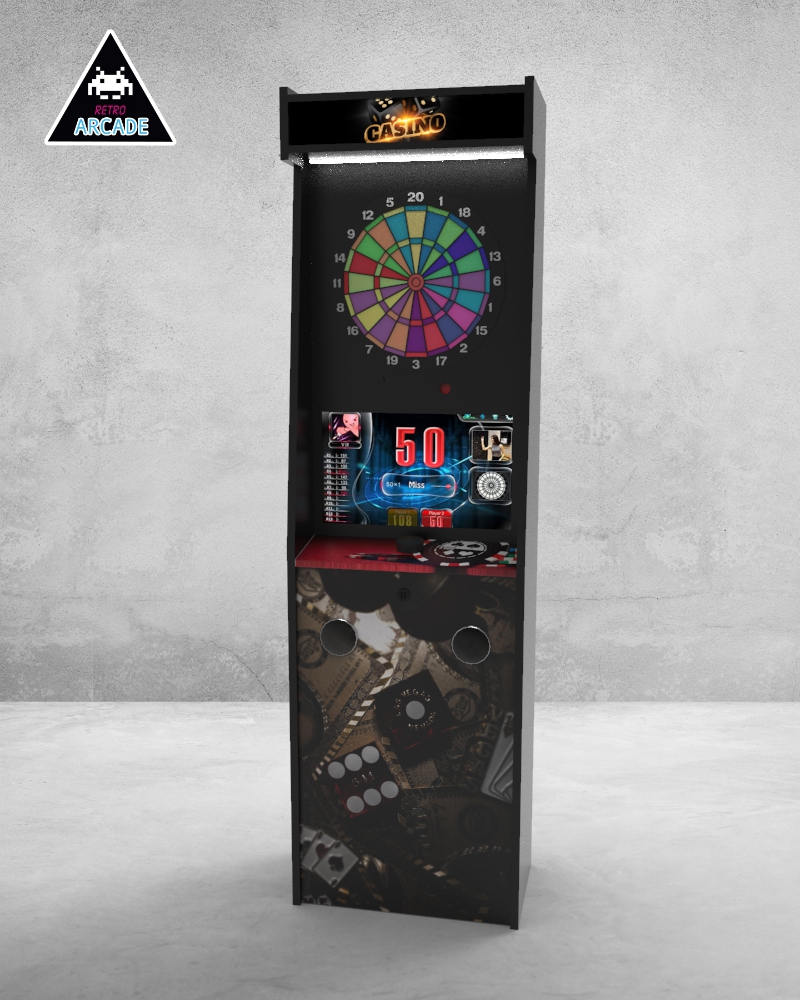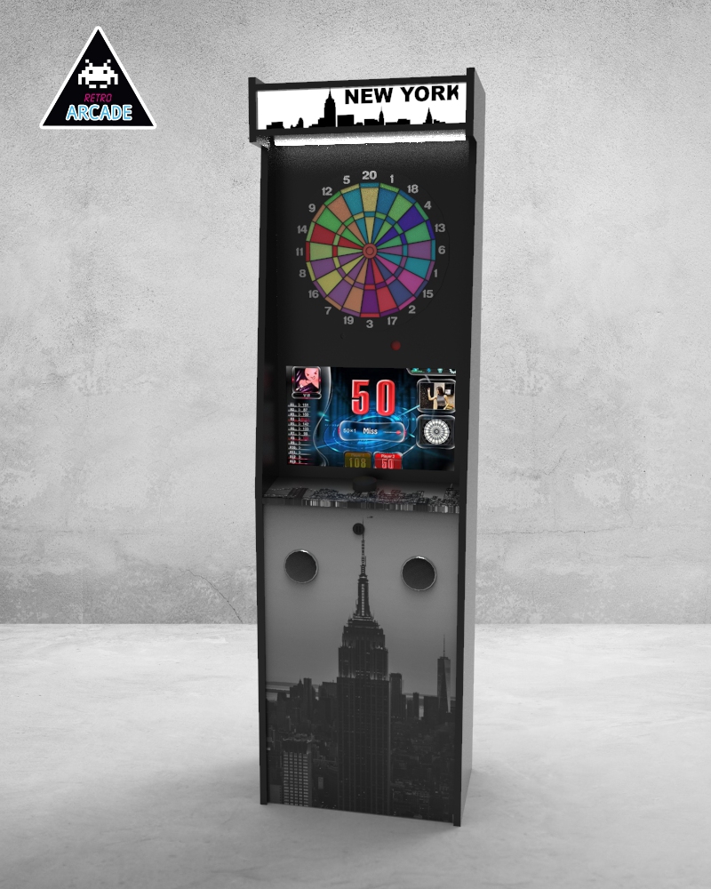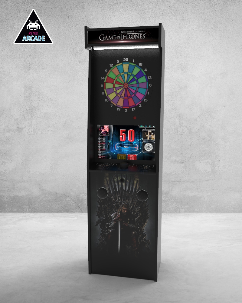 Meuble haut de gamme pour intégrer les jeux de flèchettes électroniques connectés GRAND BOARD et LIT BOARD.