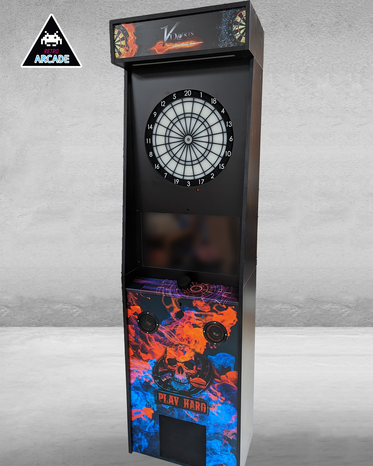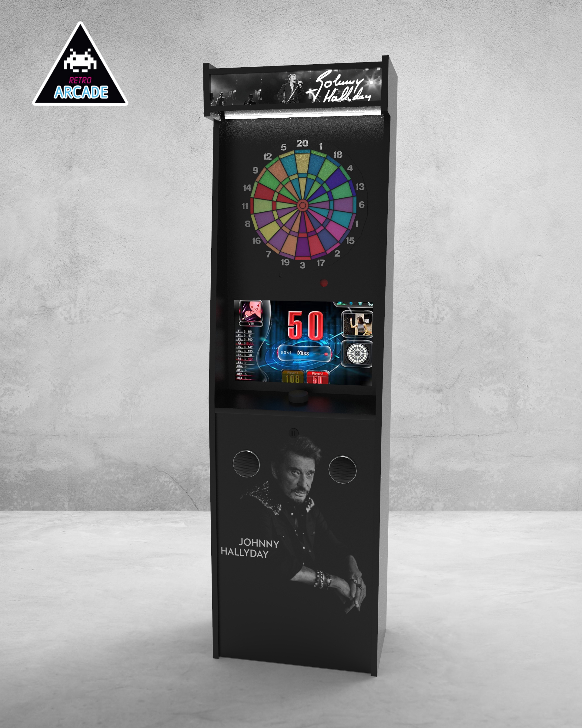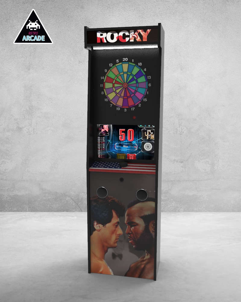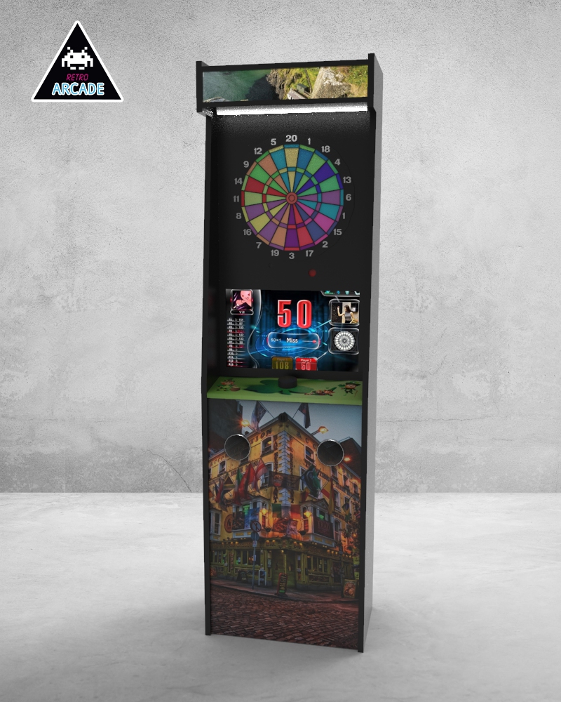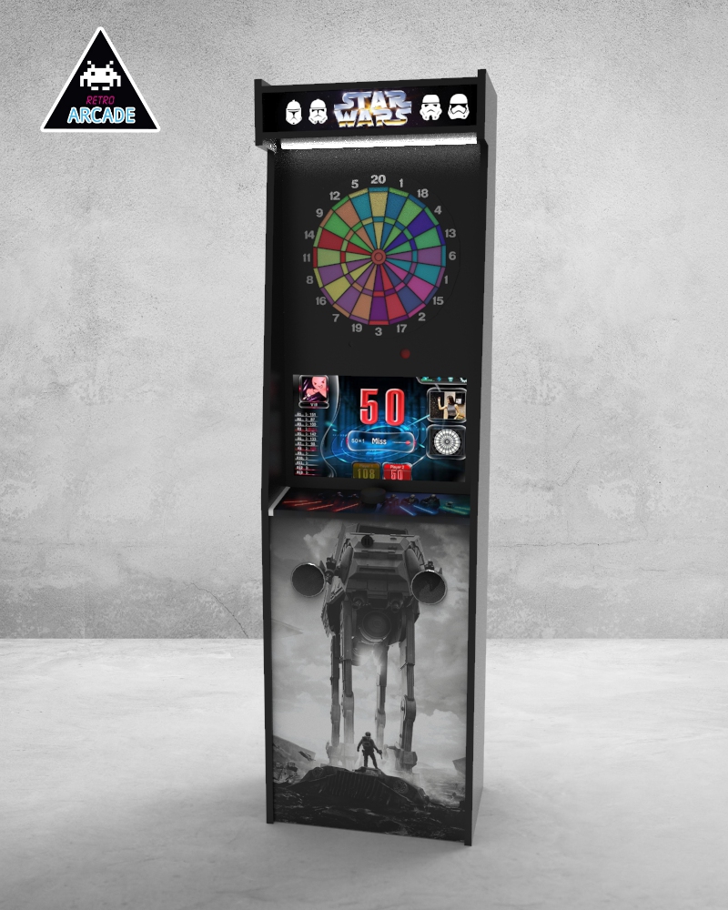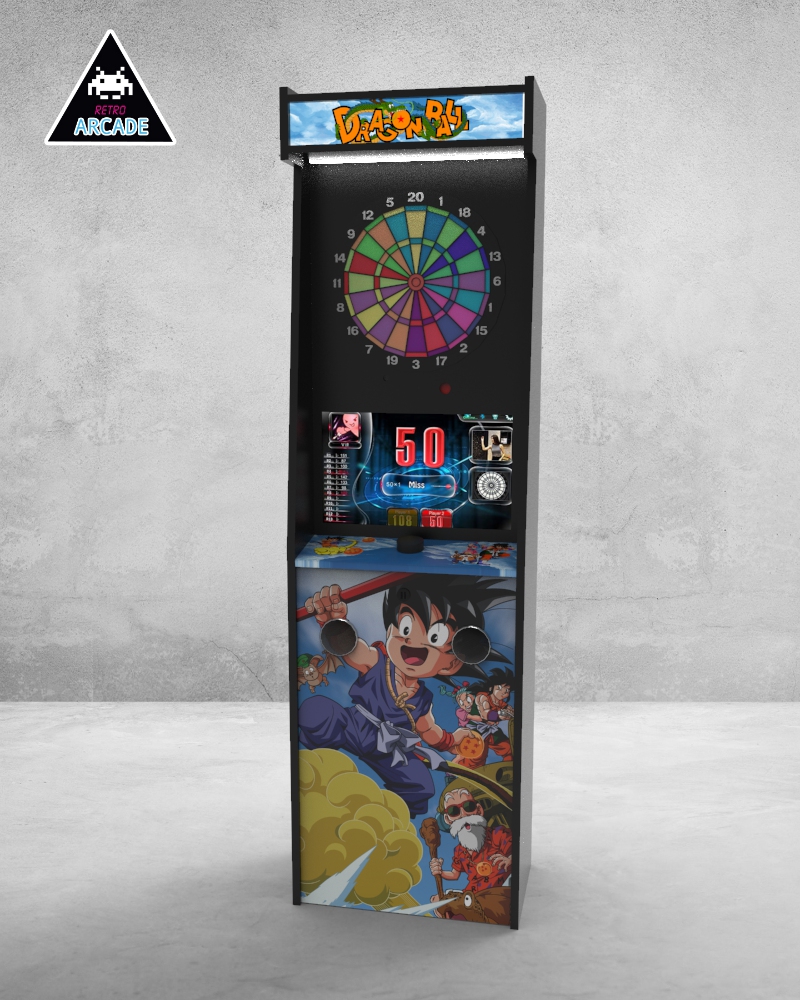 Meuble haut de gamme pour intégrer les jeux de flèchettes électroniques connectés GRAND BOARD et LIT BOARD.