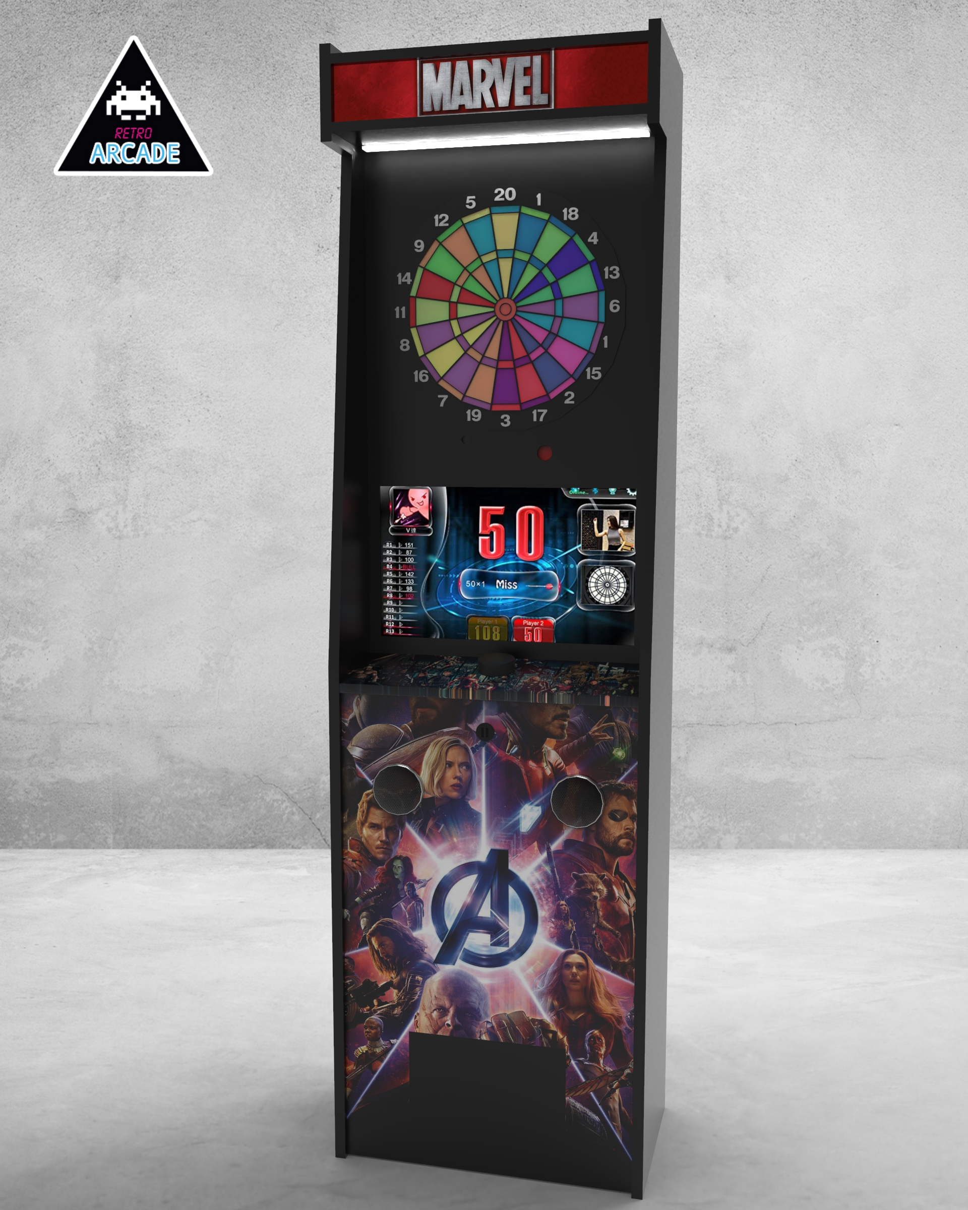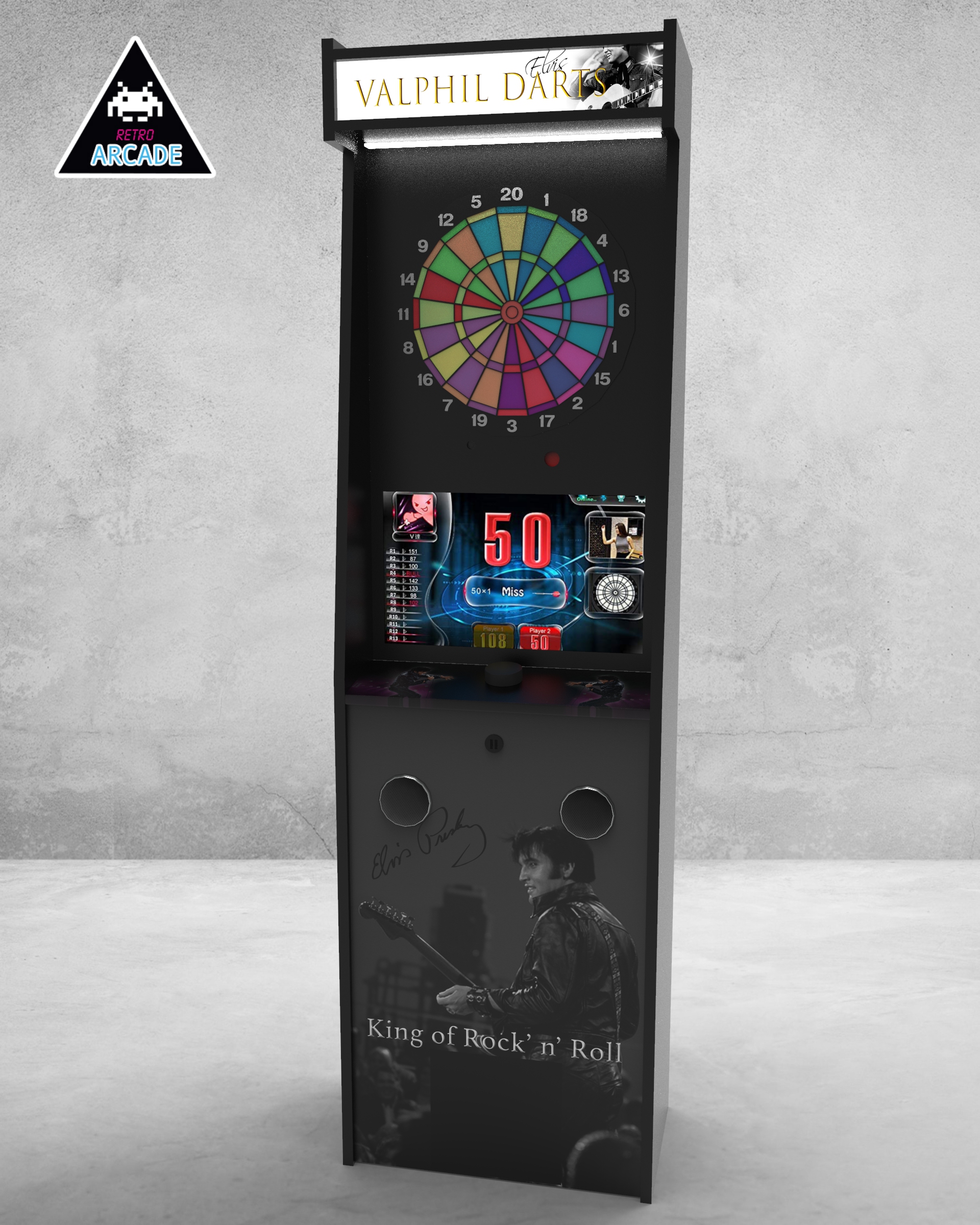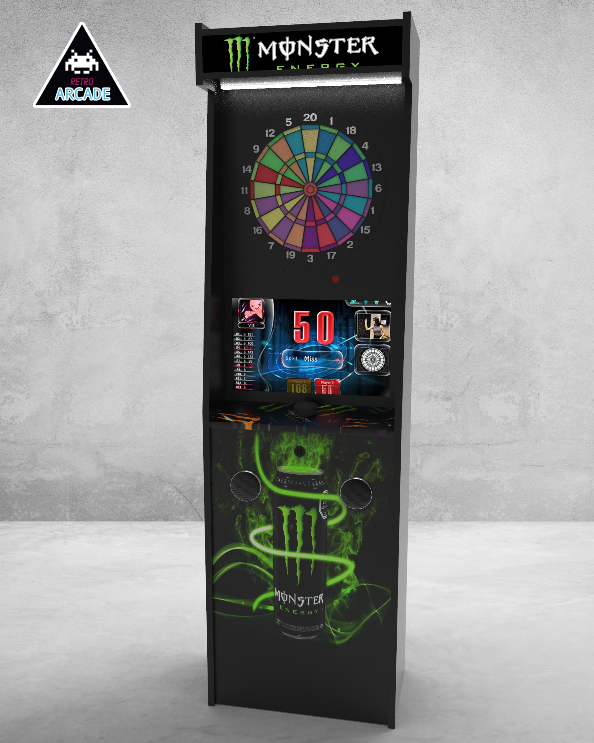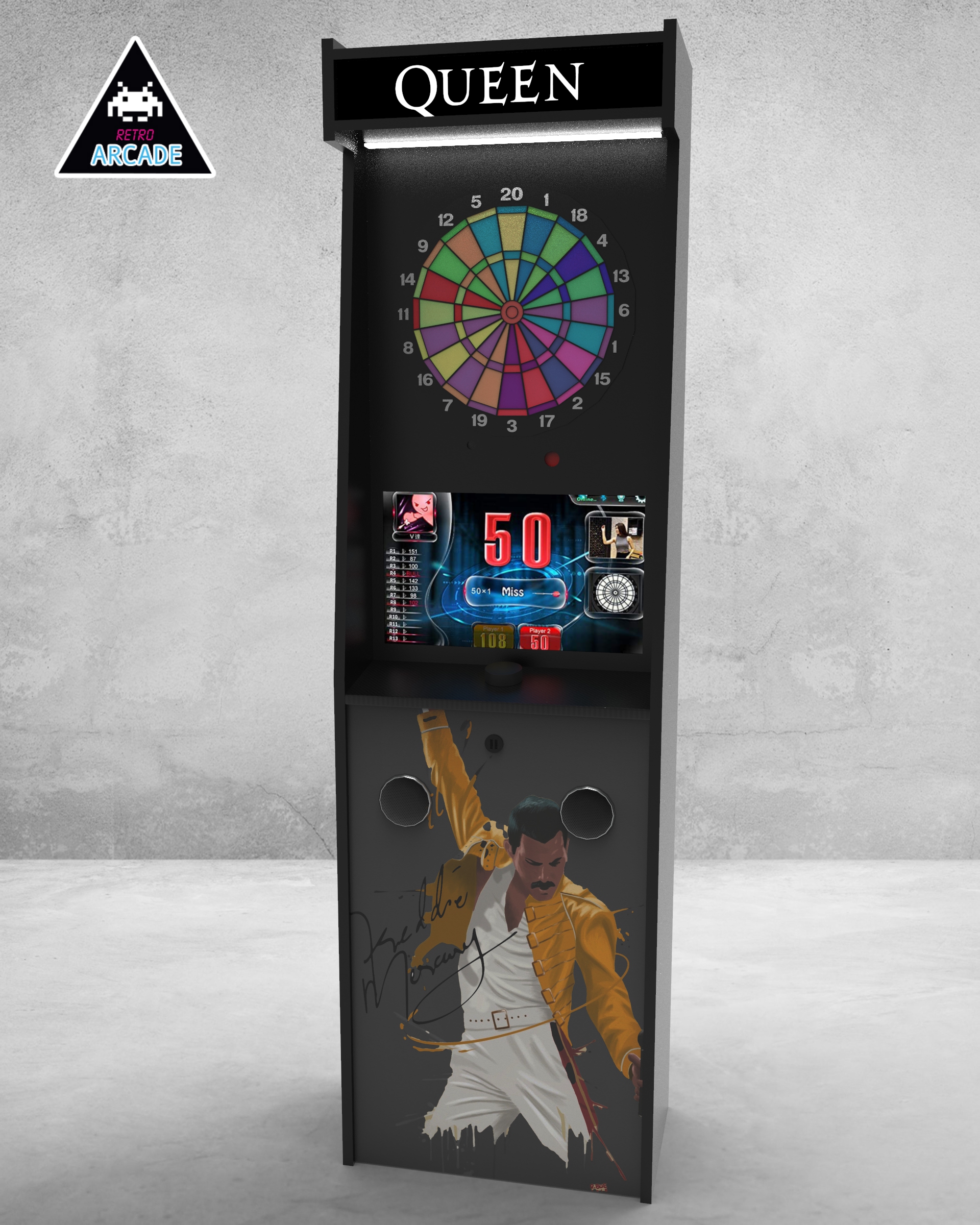 Meuble haut de gamme pour intégrer les jeux de flèchettes électroniques connectés GRAND BOARD et LIT BOARD.