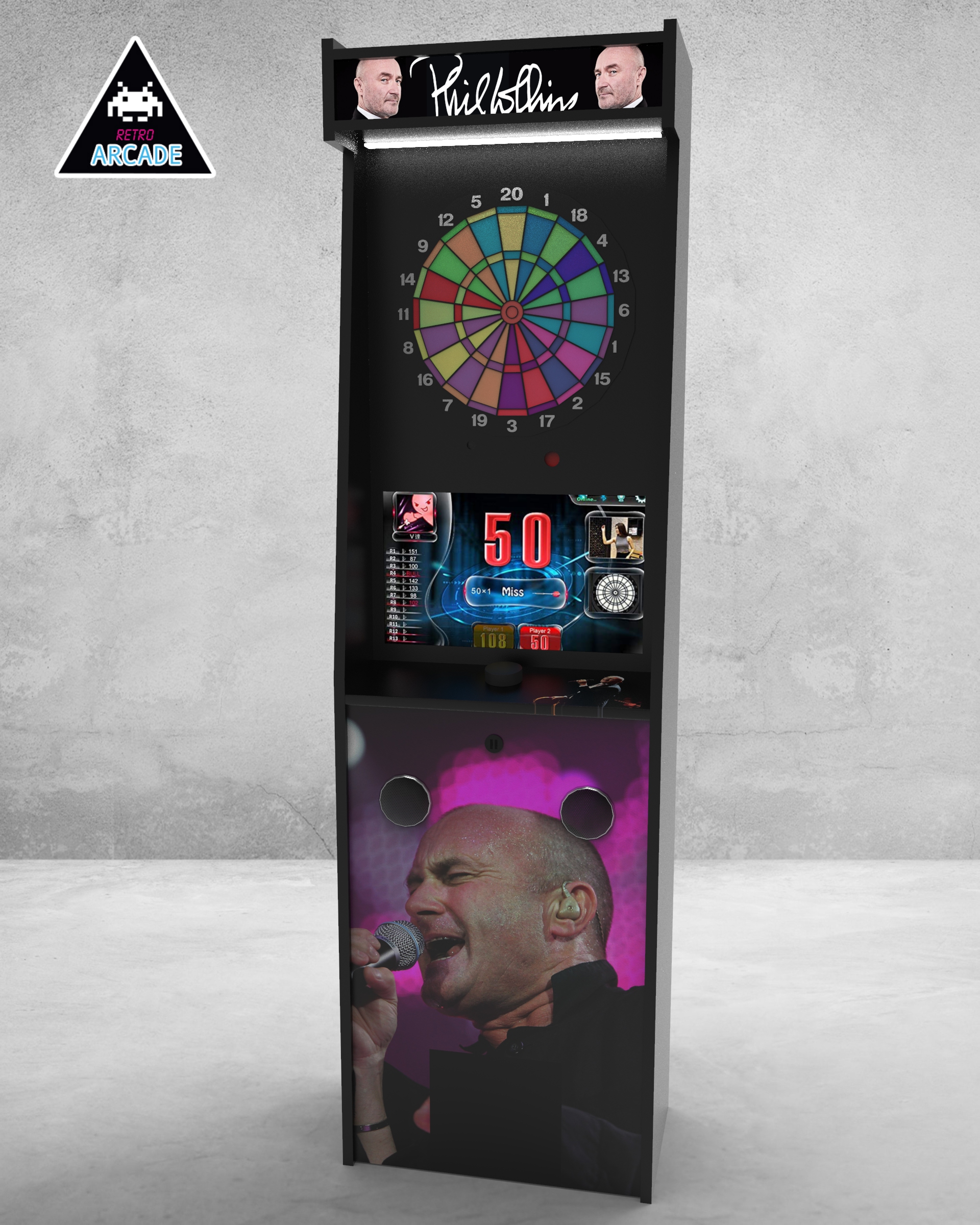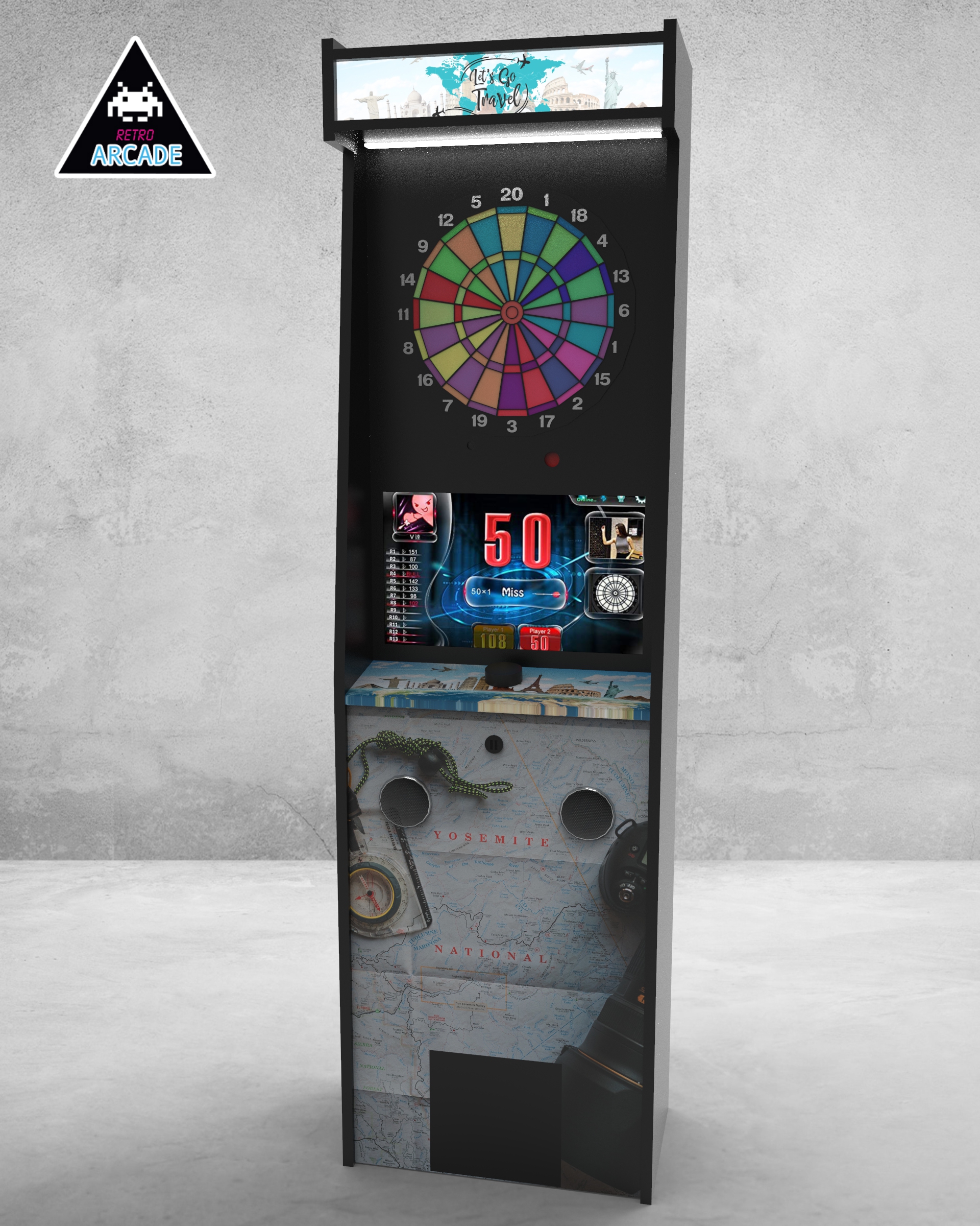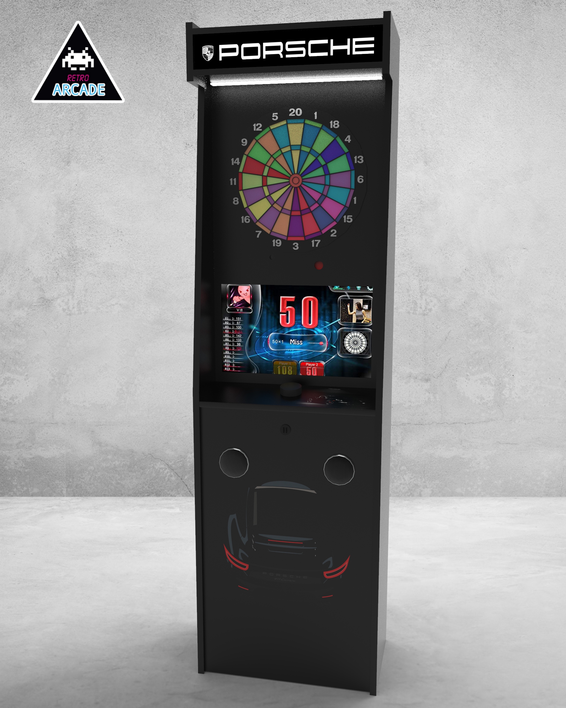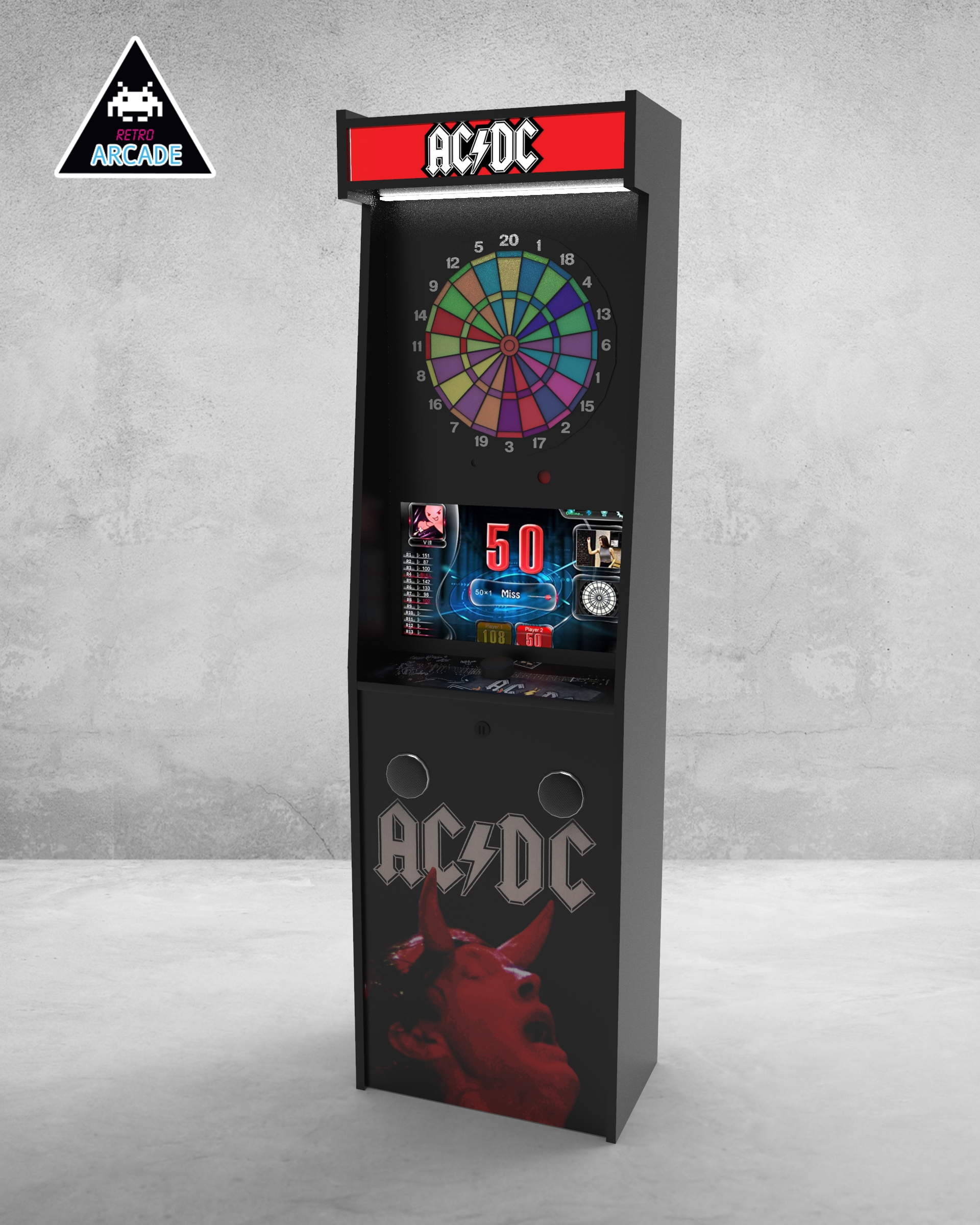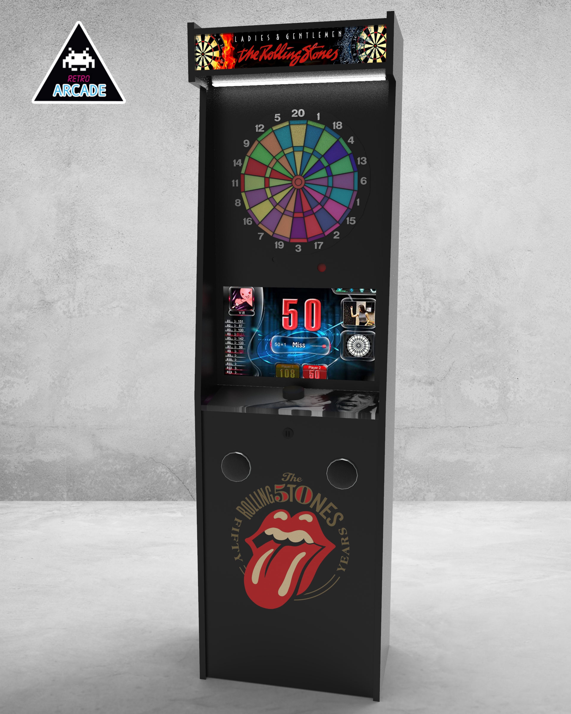 Meuble haut de gamme pour intégrer les jeux de flèchettes électroniques connectés GRAND BOARD et LIT BOARD.