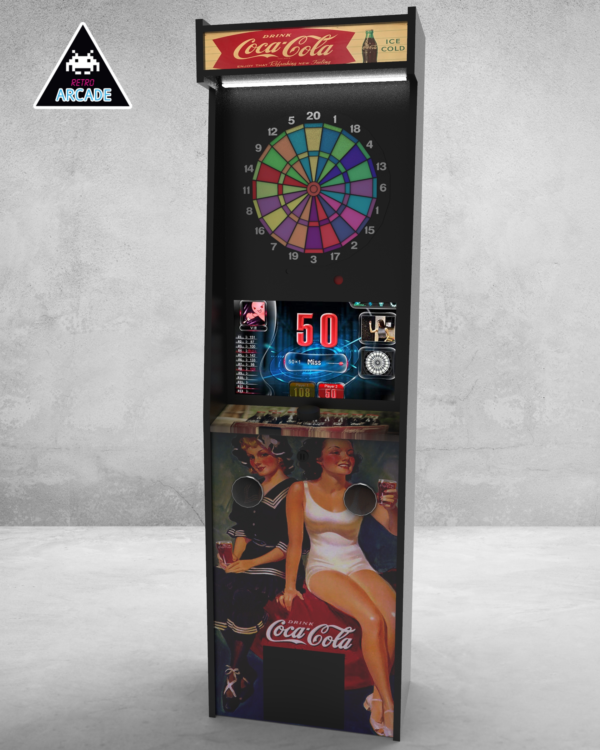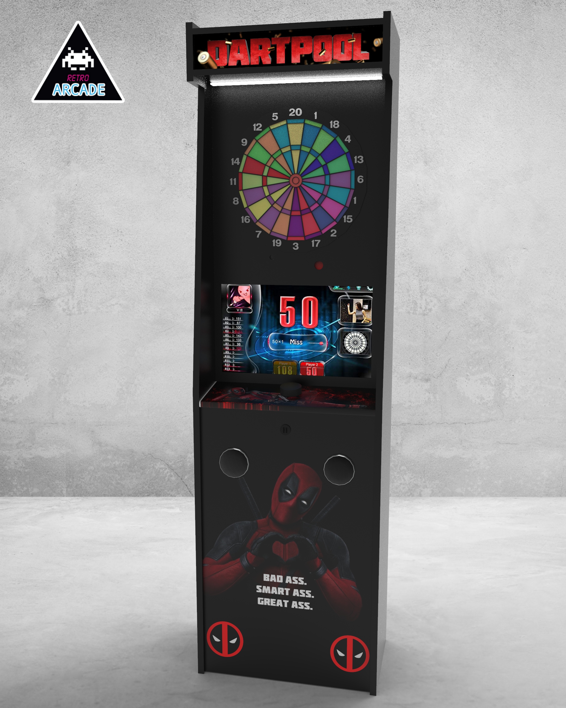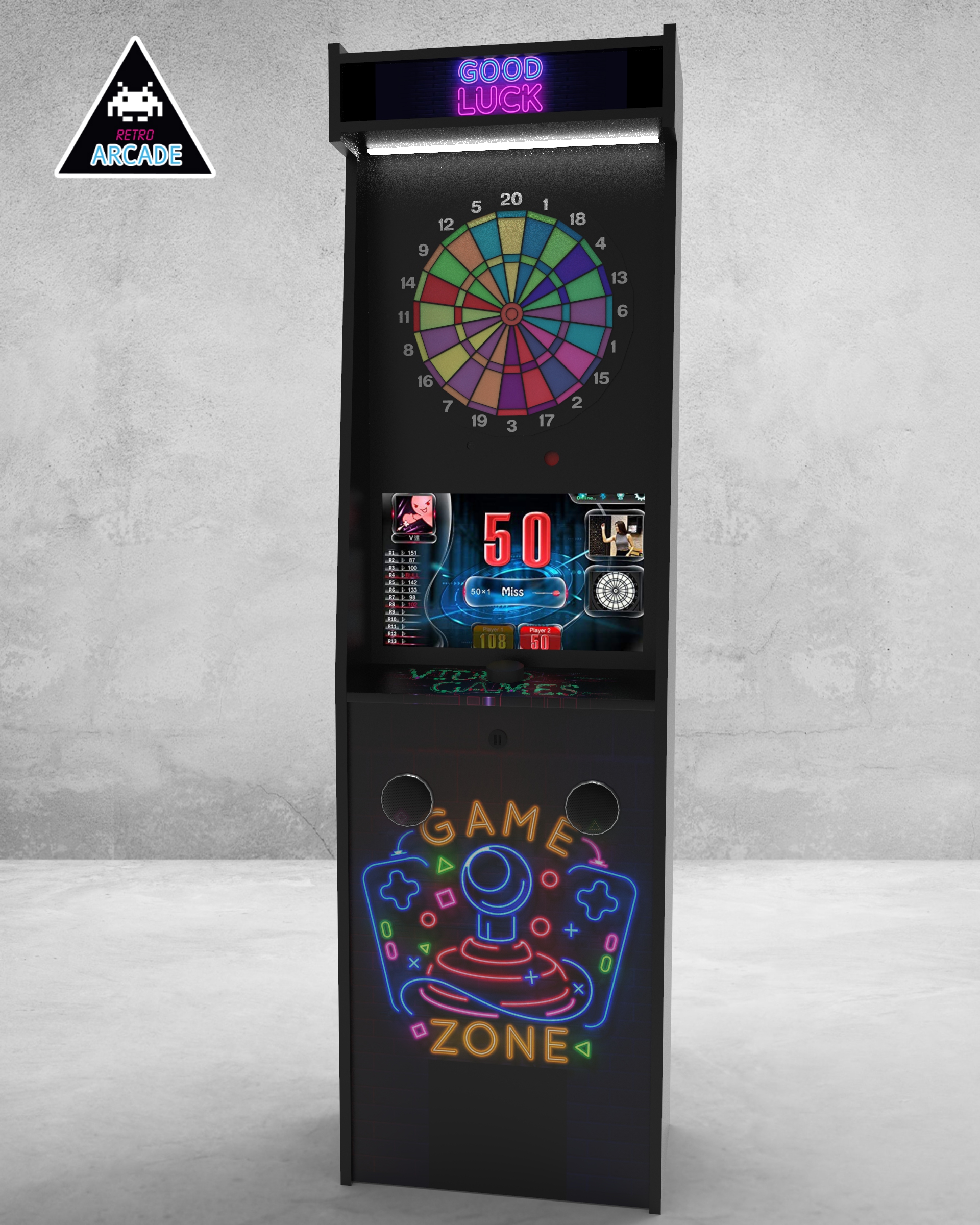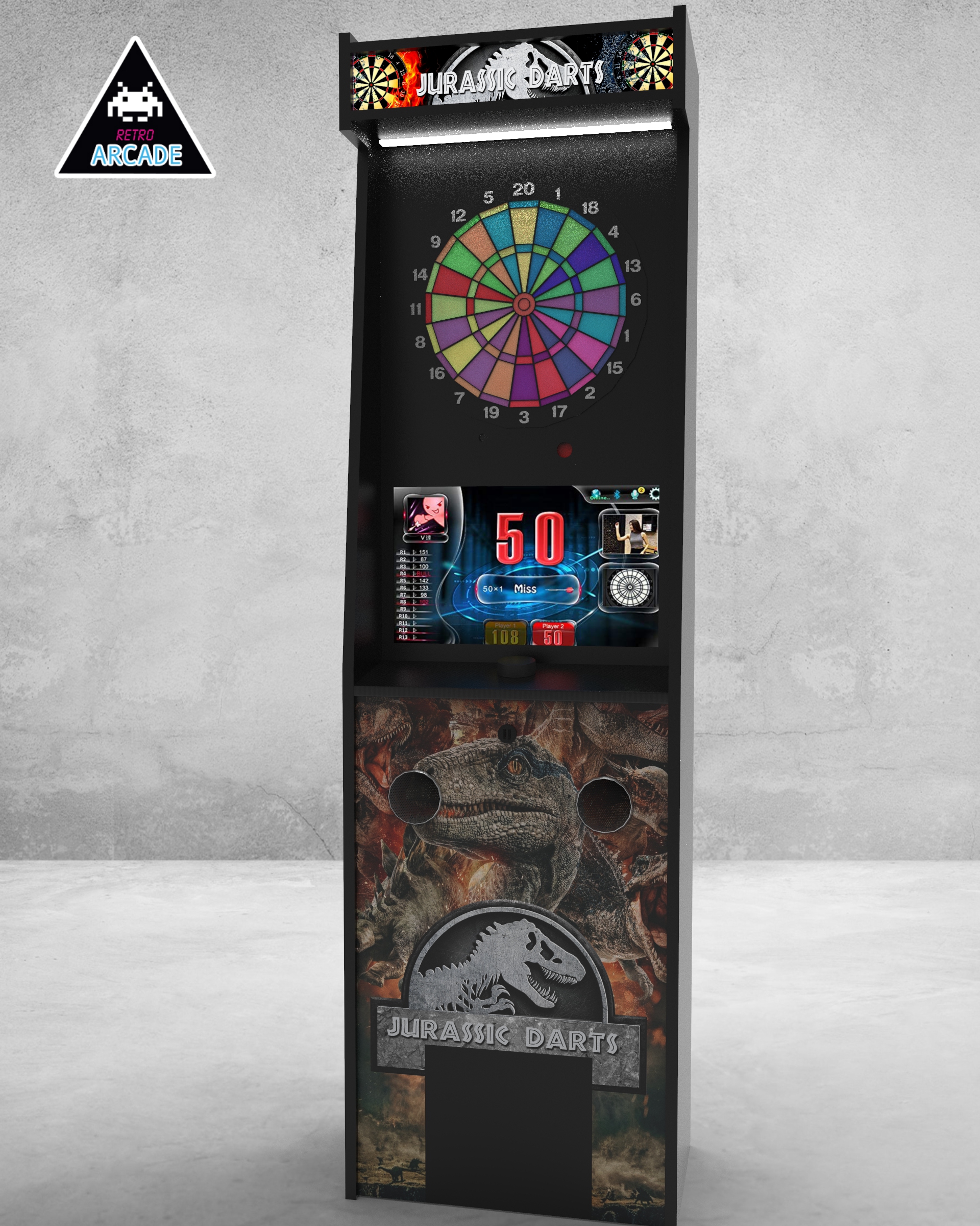 Meuble haut de gamme pour intégrer les jeux de flèchettes électroniques connectés GRAND BOARD et LIT BOARD.