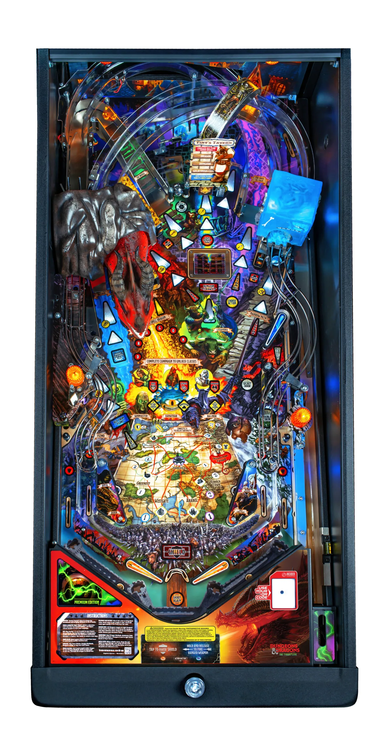 DUNGEONS & DRAGONS : The Tyrant’s Eye est présenté dans un emballage somptueux, avec la plateforme Insider Connected™ de Stern, qui permet aux joueurs d’interagir avec le jeu et un réseau mondial.