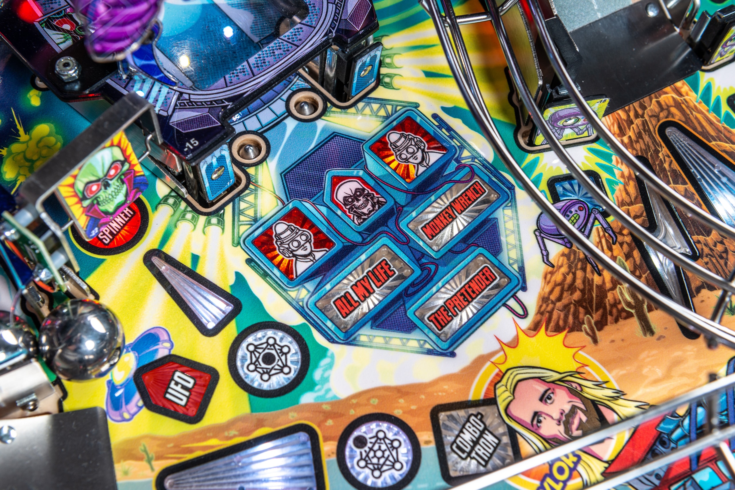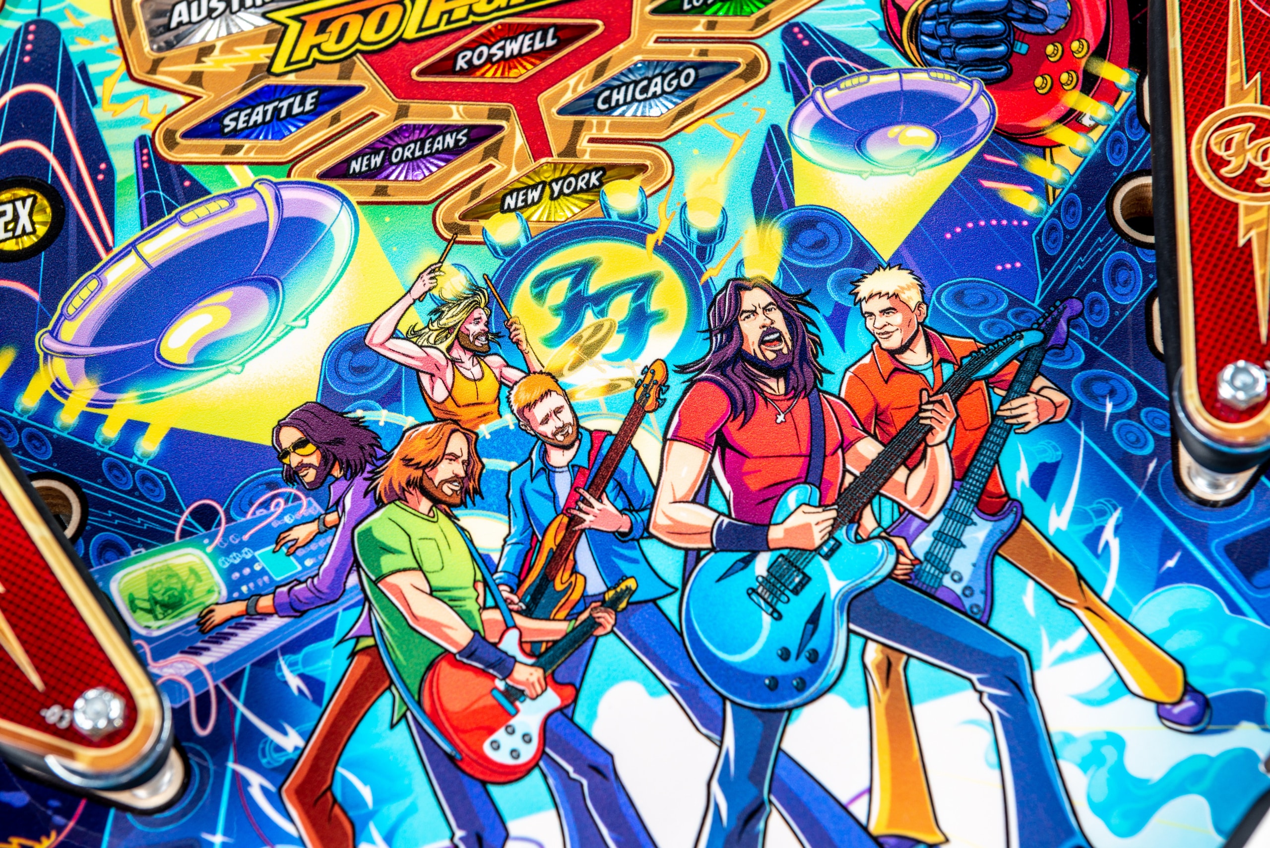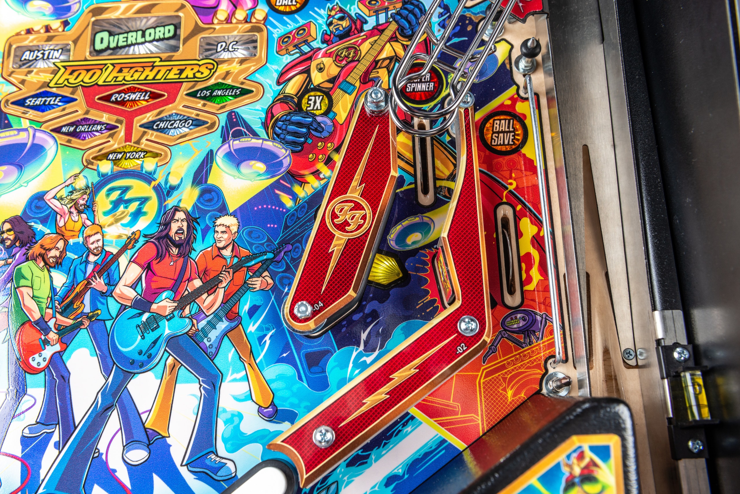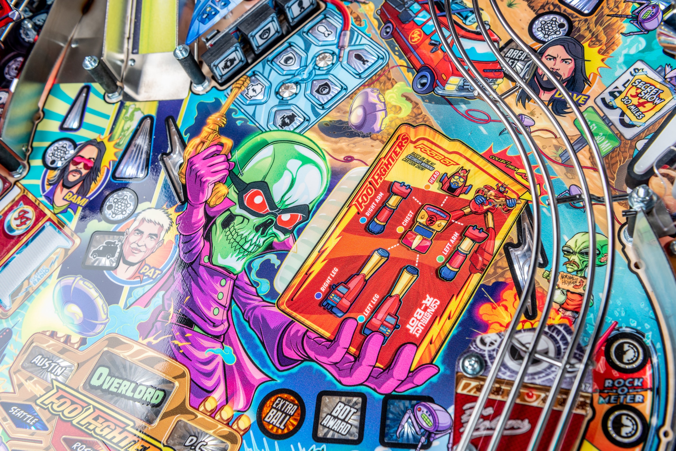 Après plus de deux ans de travail et grâce aux contributions créatives de Dave Grohl, Nate Mendel, Pat Smear, Chris Shiflett, Rami Jaffee et du regretté Taylor Hawkins, Foo Fighters de Stern est un flipper de premier ordre - et bien plus encore. Un tout nouvel univers a été développé avec des illustrations époustouflantes dessinées à la main et des animations personnalisées, dont "Foo Fighters Saturday Morning Action Time", une série télévisée fictive relatant la quête du groupe pour sauver le rock'n'roll... ET LE MONDE ! Rejoignez les Foo Fighters dans cette mission de sauvetage pour contrecarrer le mystérieux et maléfique Overlord et son armée de robots. Fouillez le terrain de jeu supérieur de la zone 51 pour vous y introduire et déclencher le chaos au flipper. Sautez dans le van pour une mission de sauvetage de l'humanité et laissez le rock régner !