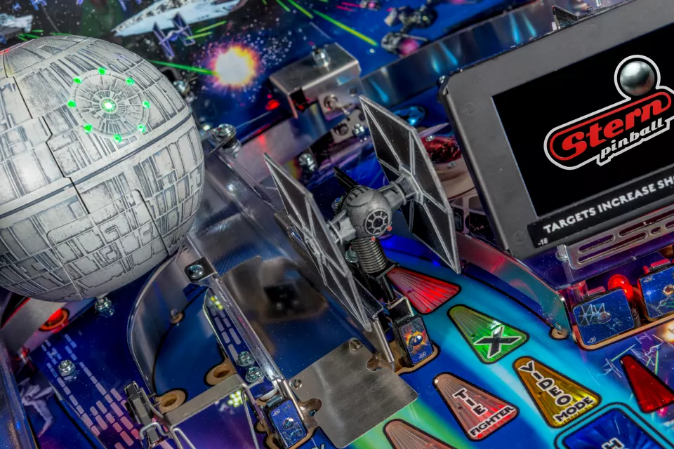 Les flippers Star Wars seront disponibles dans les modèles Pro et Premium. Le jeu plongera les joueurs dans l'environnement dynamique et stimulant du flipper Star Wars alors qu'ils se battent pour rendre justice à la galaxie. Le jeu comprend des discours et des images sélectionnés de la trilogie Star Wars originale; inserts éclairés par LED à changement de couleur; et un TIE Fighter sculpté.