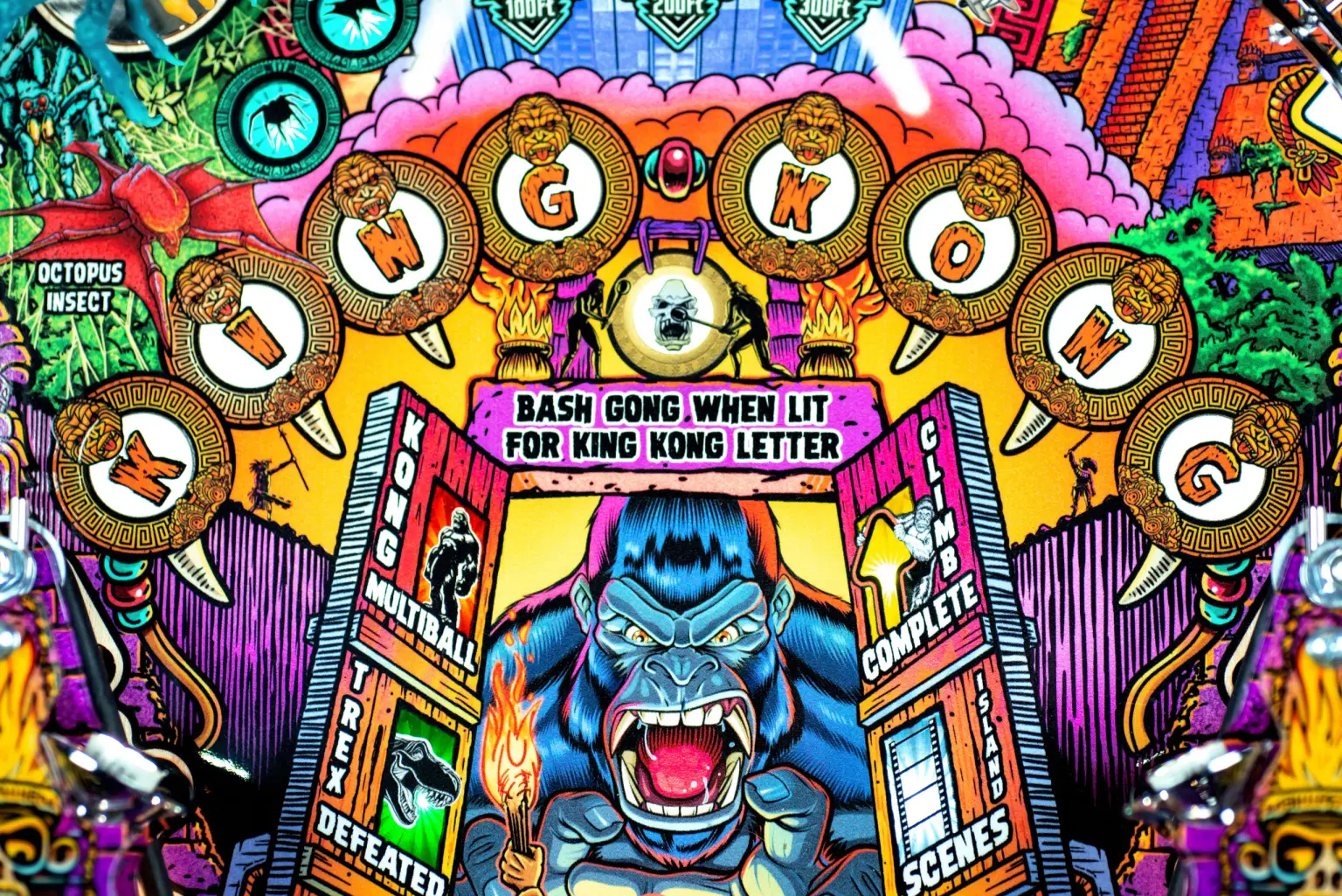 Survivez au coup de poing de Kong, une cible qui renvoie violemment la bille vers le joueur. Ce flipper met en avant des animations originales, une bande-son inédite, ainsi que des illustrations réalisées par les légendaires artistes du flipper Kevin O’Connor, Greg Freres et Jeremy Packer alias Zombie Yeti.