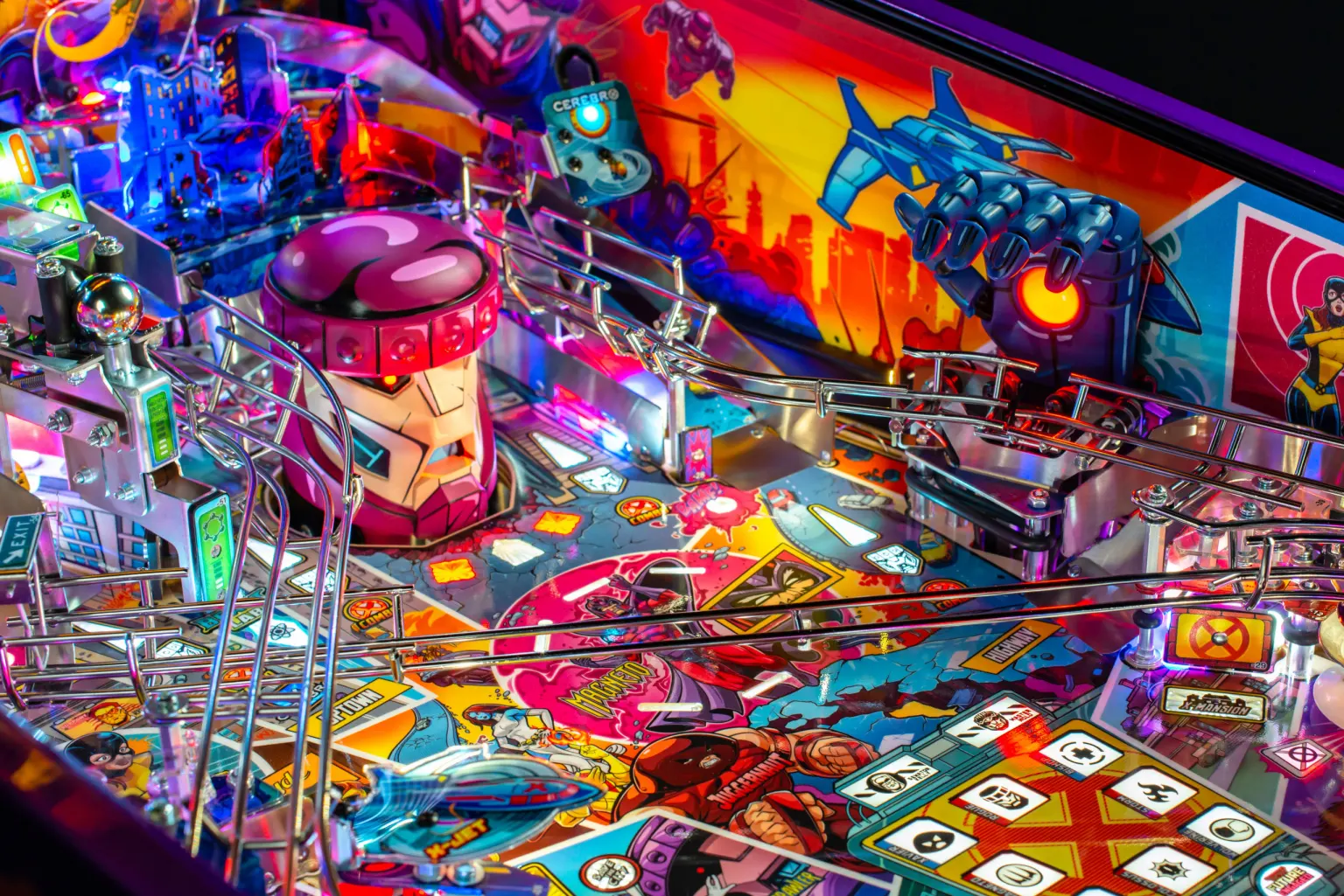 Le plateau de jeu de The Uncanny X-Men propose une disposition unique de flipper, avec une série de nouveaux tirs croisés et de rampes au design innovant, offrant des trajectoires de balle surprenantes et une satisfaction cinétique. Le tout nouveau design de la Danger Room, situé à gauche des flips principaux, propose une expérience à haut risque et haute récompense, avec un mini-flipper et un spinner inédit dans la zone des outlanes.