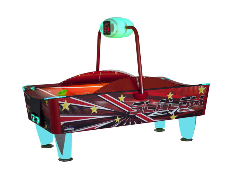 Vous avez déjà joué sur un Air Hockey mais... Avez vous goûté la nouvelle expérience du SLALOM EVO? C'est l'Air Hockey que vous connaissez mais avec des étonnants nouveaux dessins, des sons, des lumières LED, encore plus de vitesse et attrait...