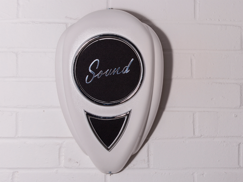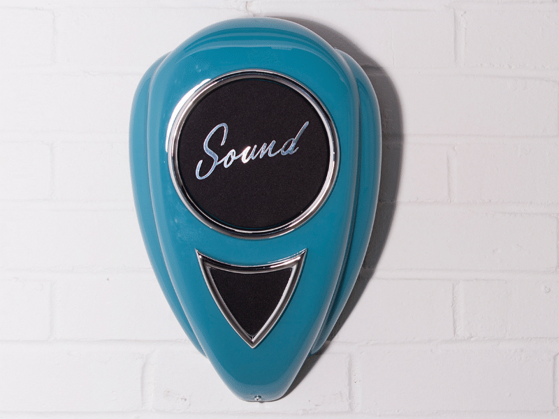 Un look qui rappelle un réservoir de moto "Harley Davidson" : d'apparence, il s'agit d'un classique des années 50, mais il est couplé à la technologie du 21e siècle pour la partie audio. Chaque haut-parleur est fabriqué à partir de poly-carbonate, de fonte et d'aluminium chromé, ce qui le rend extrêmement résistant.