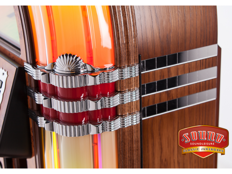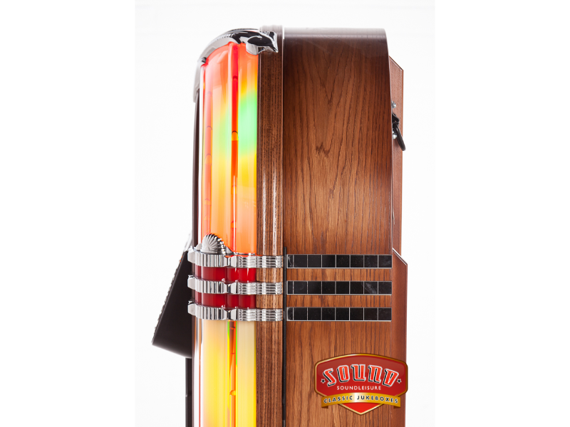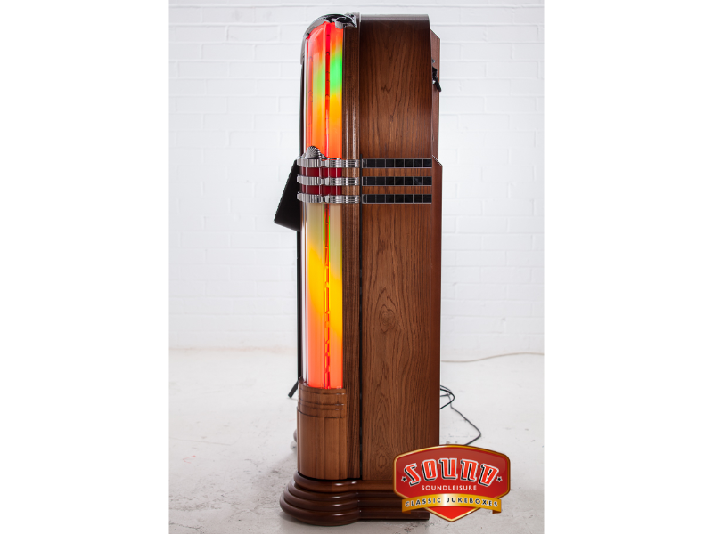Sound Leisure est la seule entreprise au monde capable de proposer cette configuration de jukebox classique grâce à notre mécanisme S3U CD unique et compact, qui contient 80 CD et toute la technologie nécessaire dans un espace ne dépassant pas celui d'une boîte à chaussures.