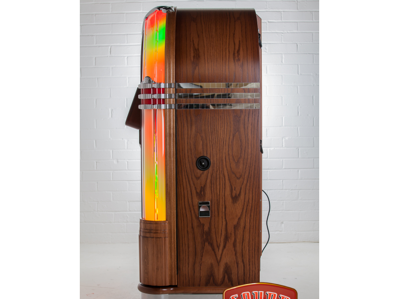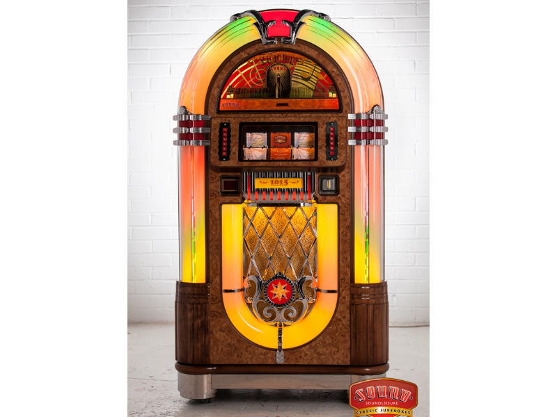 Le style de cette machine classique rend hommage au célèbre Jukebox Wurlitzer 1015, fabriqué à l'origine dans les années 1940.