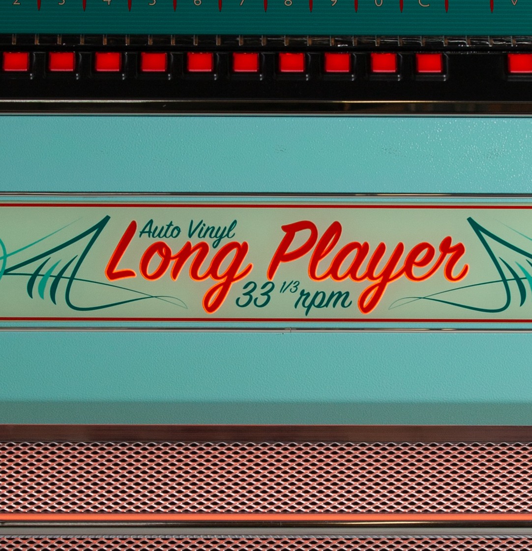 Son mécanisme hypnotique pour vinyles LP/12" est logé dans un boîtier au design indémodable des années 50, orné de chromes de qualité. Ce juke-box peut contenir 10 disques, lire les faces A et B et accepter toute combinaison de disques LP ou de singles 12", chacun étant joué à la vitesse appropriée.
