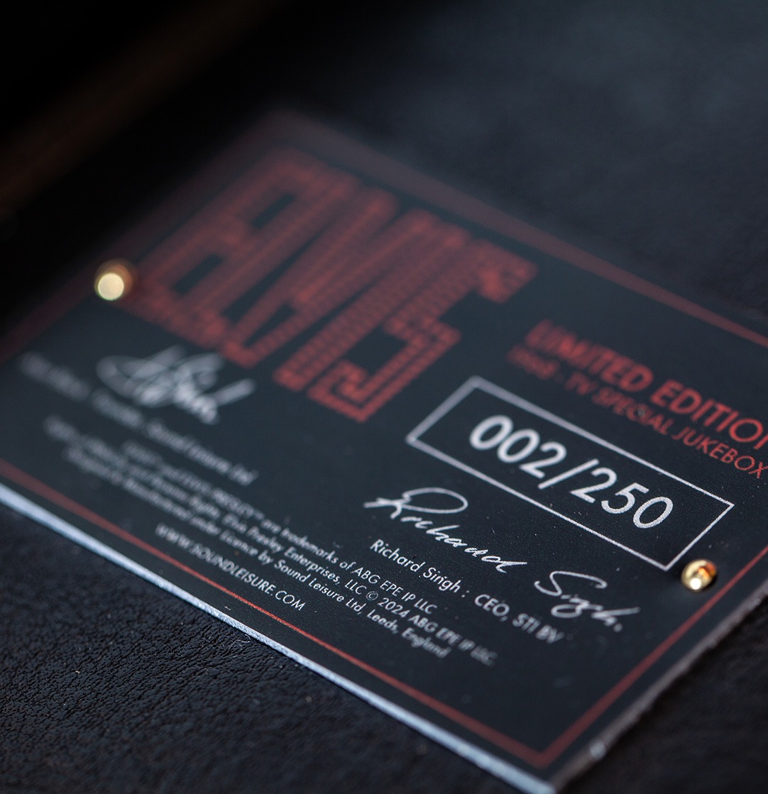 Sound Leisure Ltd, en collaboration avec Richard Singh et Elvis Presley Enterprises, présente fièrement deux juke-boxes en édition limitée et sous licence officielle, consacrés à Elvis Presley.