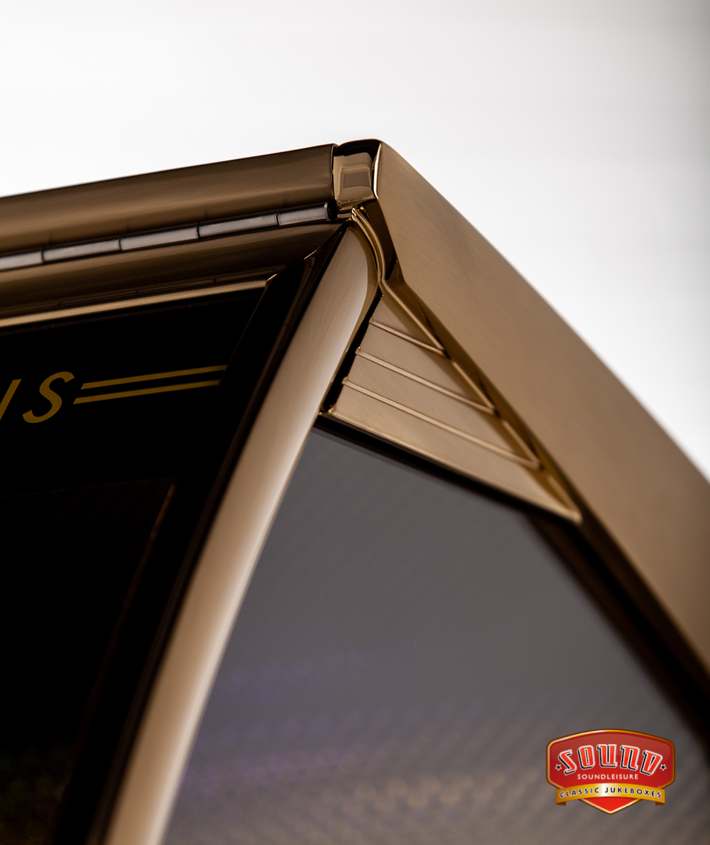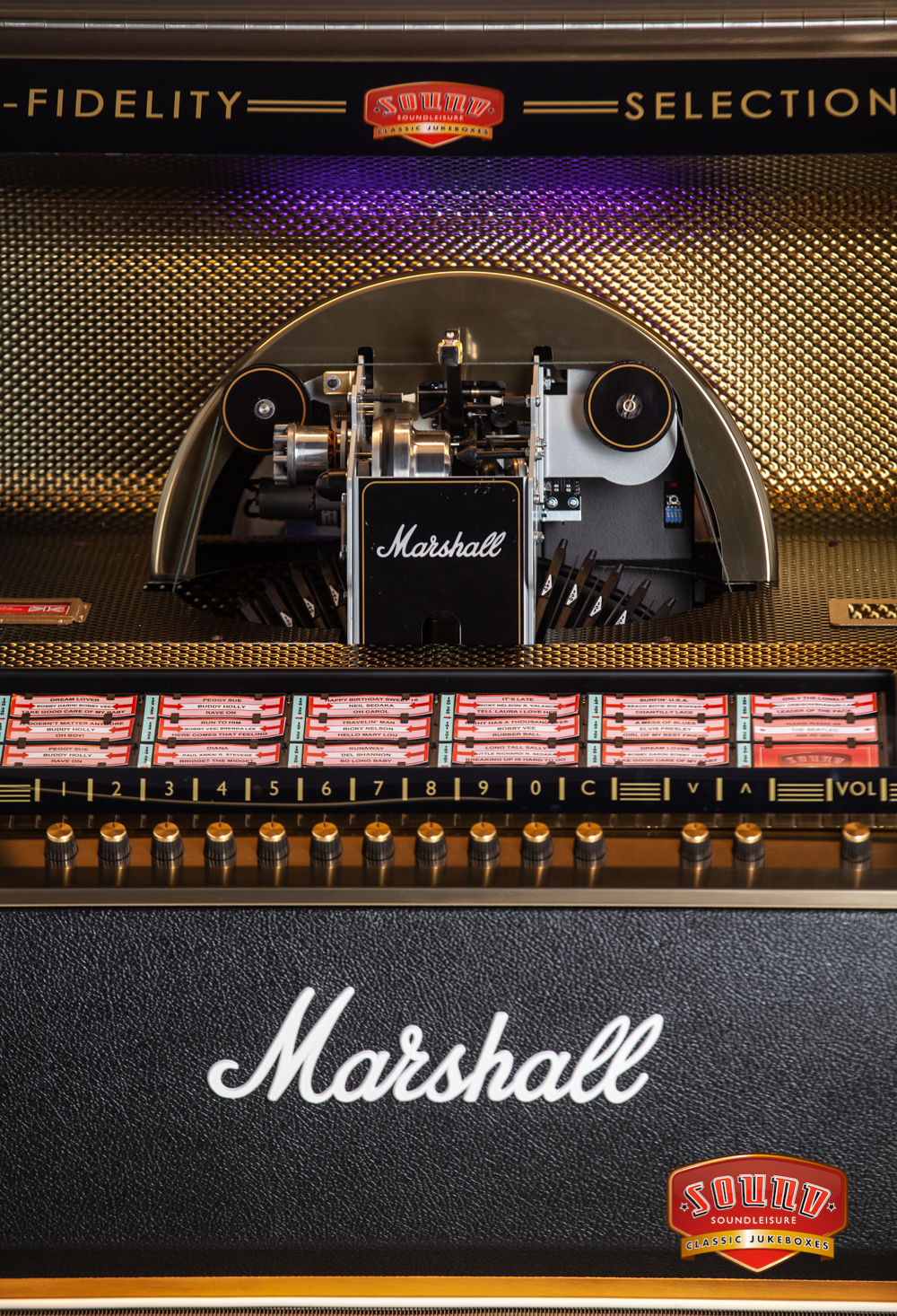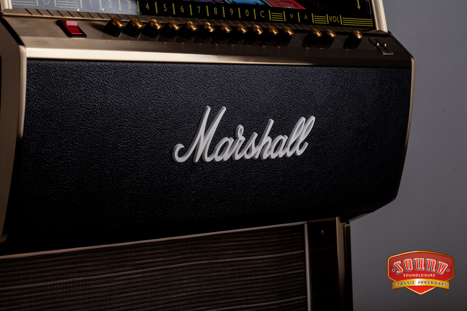 Pour garantir que le système puissant de haut-parleurs à cinq voies du jukebox produit un son vraiment exceptionnel, l’amplificateur SL-D4 spécialement conçu par Sound Leisure a été réglé avec une courbe EQ spécifique par les ingénieurs de Marshall.